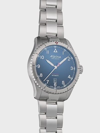 Encased within a sturdy, brushed, and polished stainless-steel frame, this watch is built to withstand the test of time. The convex sapphire crystal with an anti-reflective coating not only enhances visibility but also ensures resistance to scratches and daily wear. Whether worn in a corporate environment or during outdoor adventures, the Alpina Startimer Pilot Automatic AL-525BW4S26B maintains its pristine condition. Its robust build is further complemented by a water resistance of up to 100 meters, making it suitable for swimming and snorkeling.