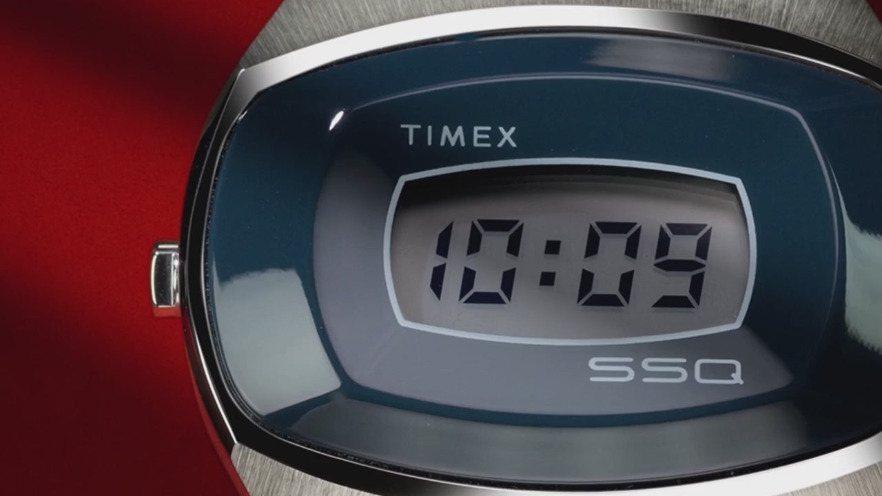 The Q Timex 1975 SSQ Digital Reissue stands as a refined men’s watch that seamlessly fuses retro ‘70s design with modern precision. A recycled stainless-steel case showcases a sophisticated sunburst-brushed top and polished sides, complemented by a bold navy acrylic lens framing the always-on LCD digital display. The lightweight, high-impact acrylic crystal enhances durability and can be polished for lasting clarity, while the adjustable brushed stainless-steel bracelet ensures lasting comfort and style. Featuring a quartz digital movement, simple date function, and 0-60 second counter, this Timex watch is water resistant to 50 meters, making it both an enduring fashion statement and a reliable everyday choice.